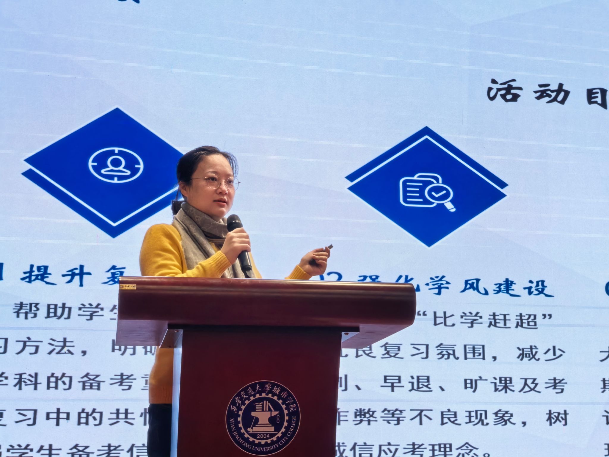 在前沿技术报告结束后,学风建设主题活动正式启动。电气信息学院院长助理廉宇婷老师进行学风建设政策宣读与动员讲话。廉老师首先解读了学校及学院关于加强学风建设的相关政策要求,明确了学风建设的核心目标与具体举措。她结合电气专业学习的特点,从课堂纪律、课后复习、科研实践、诚信考试等多个维度,对同学们提出了具体的学习要求与期望。同时,廉老师鼓励同学们树立正确的学习态度,主动搭建互助学习小组,形成比学赶超的良好学习风气,以扎实的专业知识筑牢成长根基。