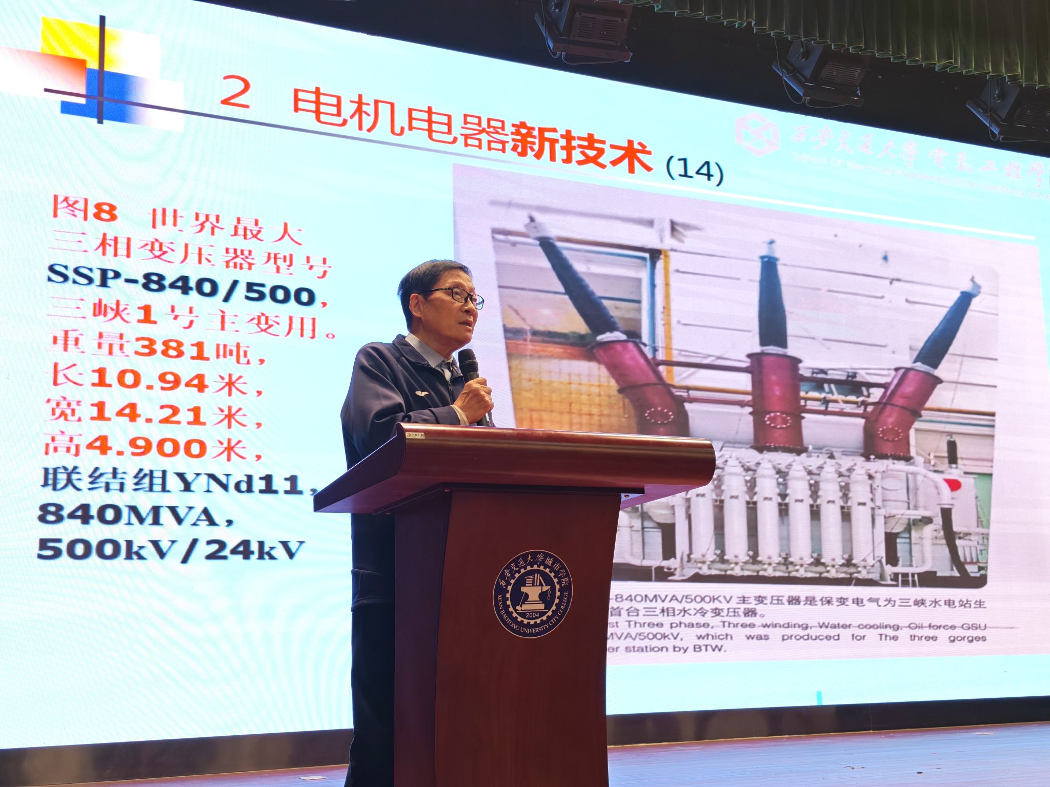 随后,阎治安教授登台作电气前沿技术专题报告。报告中,阎教授结合自身丰富的科研经历与行业实践经验,围绕电气领域的核心技术突破、前沿发展趋势以及未来应用前景展开深入讲解。他用通俗易懂的语言,将复杂的专业知识拆解剖析,既涵盖了电力电子、电机控制等基础领域的创新进展,也聚焦了新能源电力系统、智能电网等新兴方向的发展机遇与挑战。此次报告为同学们搭建了与行业权威专家直接交流的平台,有效帮助大家厘清了专业学习方向,激发了投身电气领域科研创新的热情。