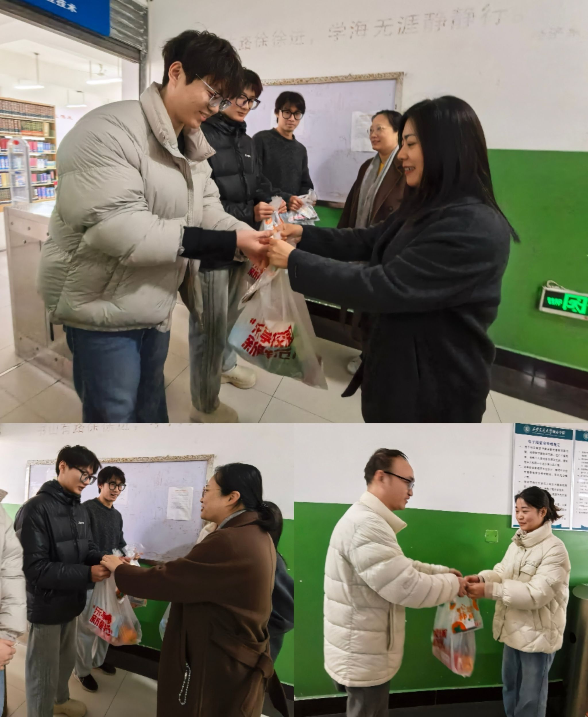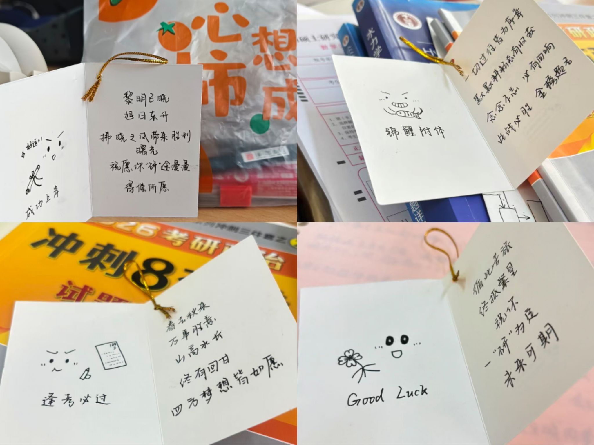 慰问团队还贴心地为考研学子们准备了暖心礼包,其中包含备考文具、能量食品及写满鼓励话语的祝福卡片。一份份满载心意的礼物,一句句饱含关怀的话语,让正在紧张复习的同学们倍感温暖与振奋。同学们纷纷表示,学院领导老师的到来让他们深切感受到了电气信息学院这个大家庭的温暖与支持,极大地增强了他们的信心与决心,他们将不负期望,奋力一搏,以优异的成绩回报学院的培养与关怀。