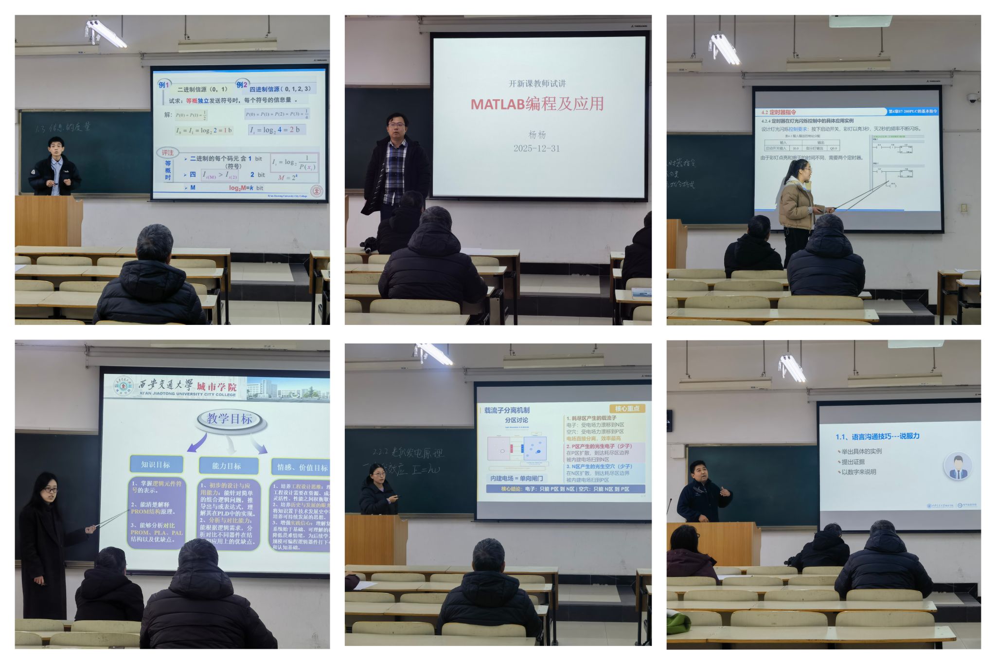 本次试讲工作聚焦教学准备、教学过程、专业素养三大核心维度,对开新课教师的授课水平进行全面检验。从整体情况来看,参与试讲的教师均展现出良好的教学准备状态,能够结合工科课程特点,在课件中融入丰富的教学案例与演示动画,契合课程教学要求;教学过程中,教师们普遍采用启发式、案例式教学方法,注重引导学生思考,教学环节设计基本合理,顺利完成既定知识点的讲授任务;在专业知识层面,授课教师均具备扎实的专业基础,能够准确解读课程核心概念与原理,实现知识点的自然衔接与拓展。