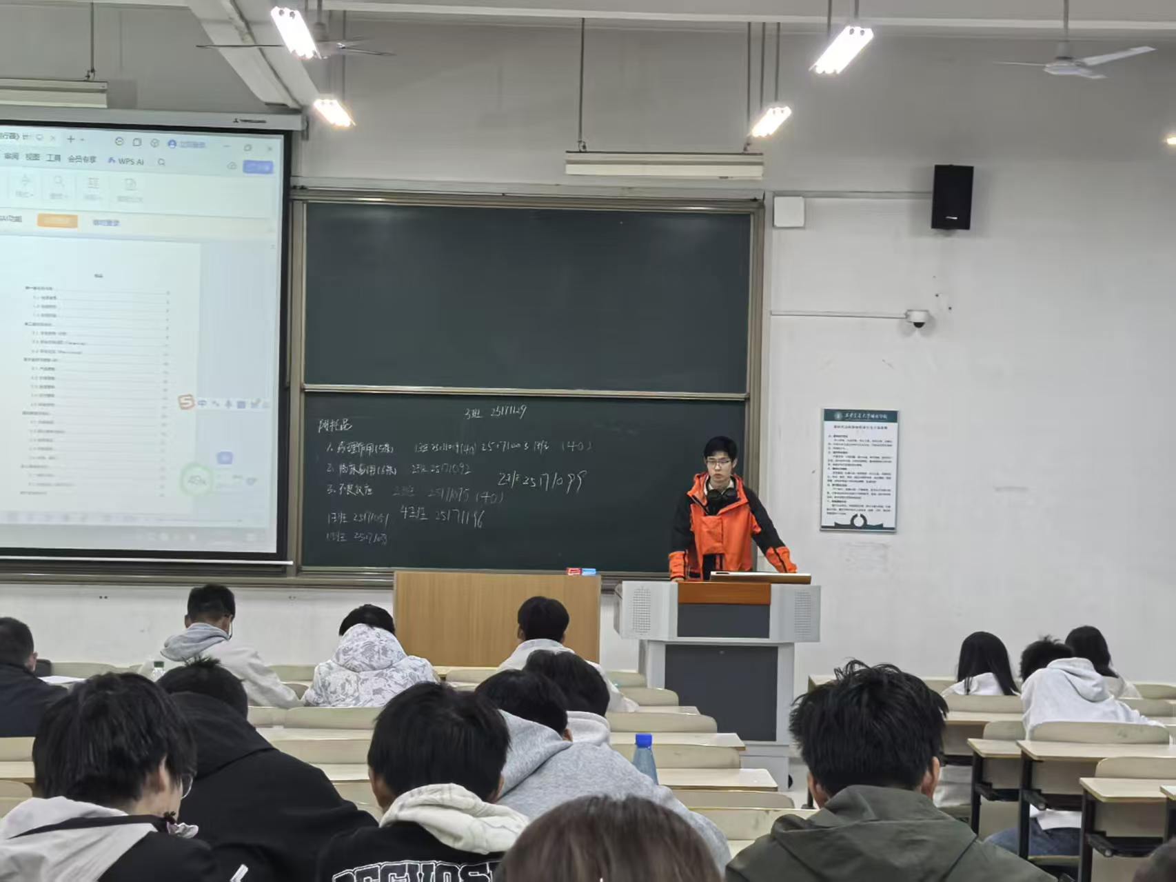 随后,2024年国创铜奖得主许金涛分享了《智慧眼 —AI 课堂引领者》项目的实践经历。他结合 AI 技术在课堂考勤、学情分析等场景的应用实例,解读了 “技术服务实际需求” 的创新逻辑,揭秘了项目如何通过无感人脸识别、课堂行为分析等核心功能脱颖而出。他坦言备赛过程中曾遭遇技术瓶颈与市场调研难题,鼓励新生 “别怕试错,每一次调整都是成长”,并分享了赛事资料收集、导师沟通技巧等实用经验。